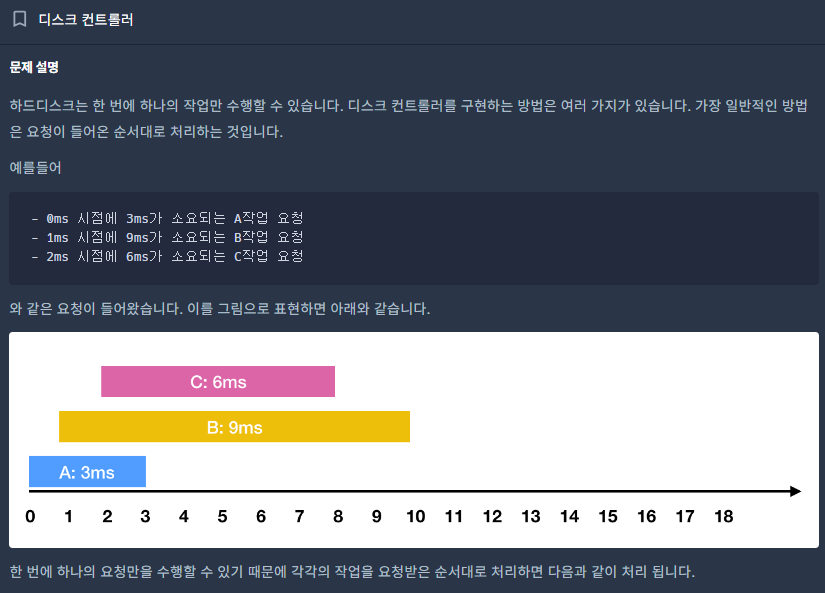 - 작업의 요청시기, 작업 소요시간으로 날라옴