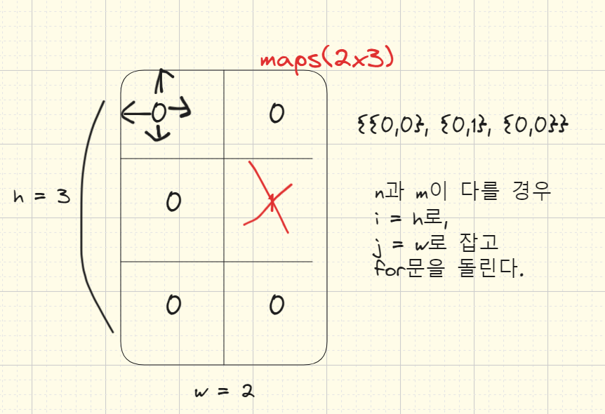 - 맵은 n * m 으로 이루어져 있고 서로 다를 수 있음