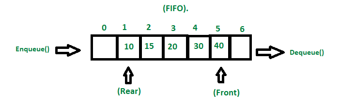 Rear : 맨 뒤 요소를 가리킴(데이터가 삽입되는 곳) (Front==Rear인 경우라면 queue is empty)
