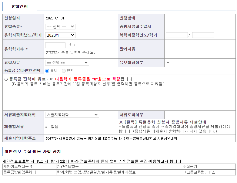 한국방송통신대학교 휴학 신청 방법(온라인)