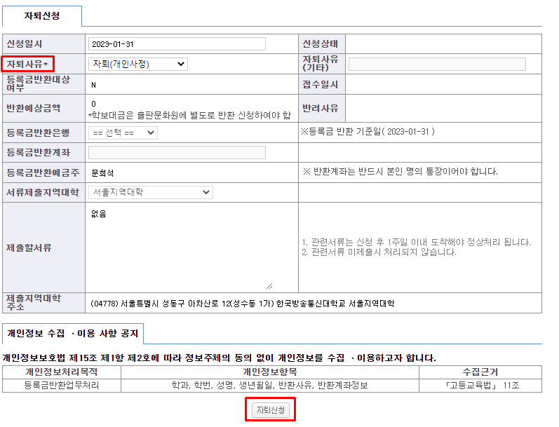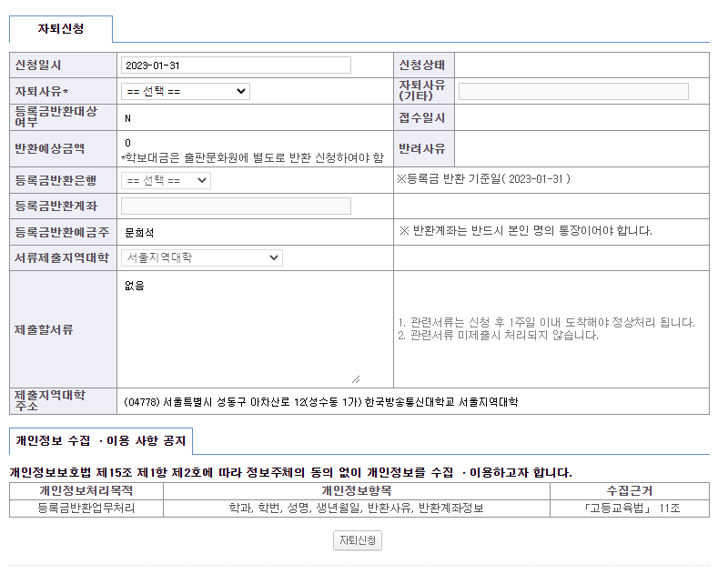 한국방송통신대학교 자퇴 신청 방법(온라인)
