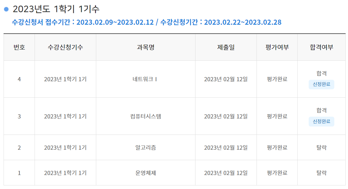 특히나 알고리즘, 운영체제는 이름만 대학 과정에서도 필히 배운다고 볼 수 있는 과목들이기 때문에 경쟁자도 더 많았을 것으로 생각되고 이 글을 보고 신청하는 사람들이 있다면 인기가 적을거 같은 과목들로 선정해 신청하는 것도 방법이 될 것 같다. 4과목만 무료로 가능하니 결국은 유료로 수강해야 하는 과목들이 있을 것이고 그걸 인기있는 과목으로 들어버리면 그만이다.