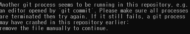 깃은 커밋도중 프로세스가 꺼지면 깃 메인 저장소 밑에 index.lock이라는 파일을 생성하기 때문에 만약 이런 에러가 보였다면