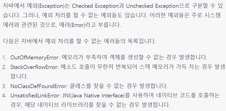 StackOverflowError, OutOfMemoryError 등등이 있고