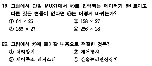 이 문제의 핵심은 제어주소 레지스터, 제어기억장치, 처리장치 등이 어디있는지와 몇비트를 넘겨주는지 입니다.