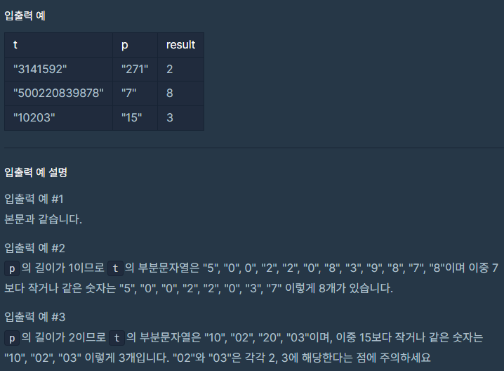 [프로그래머스][L1] 크기가 작은 부분 문자열 자바 문제 풀이 및 정답