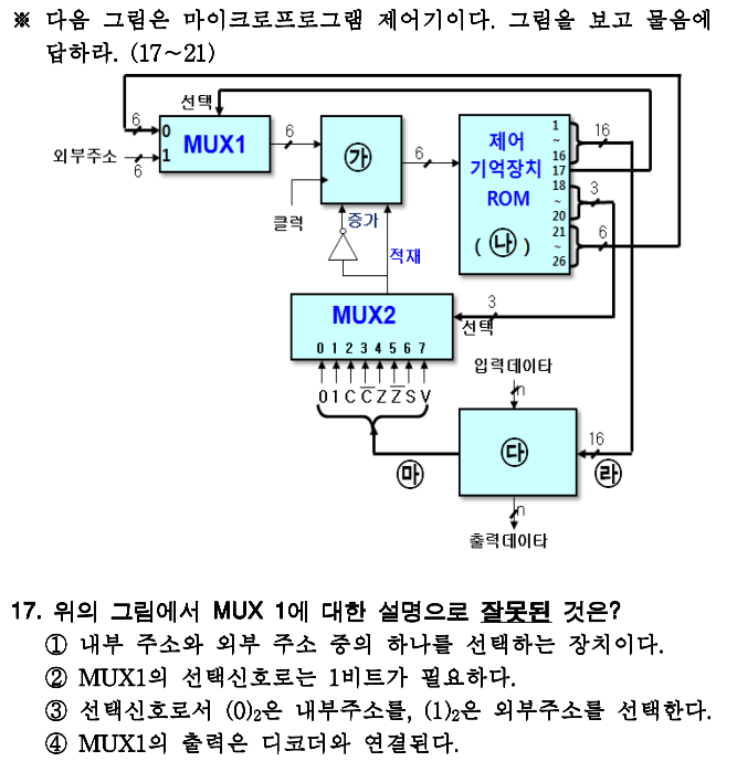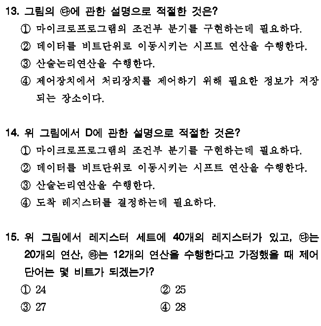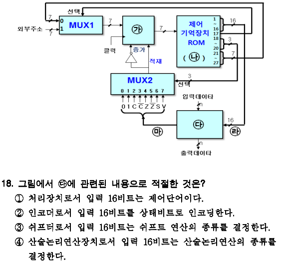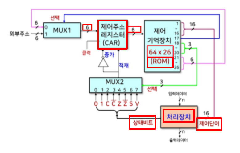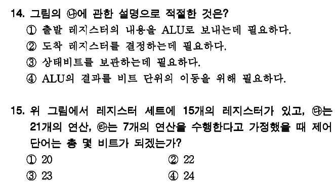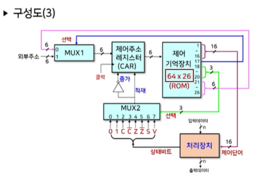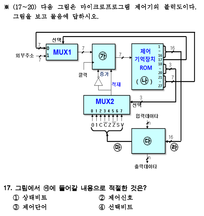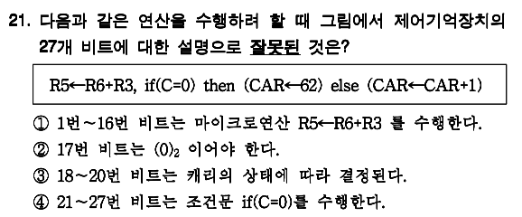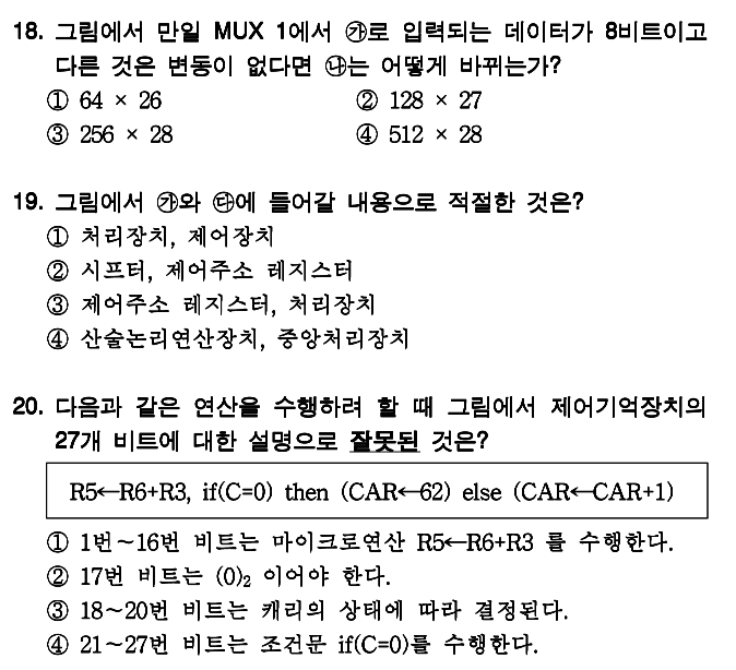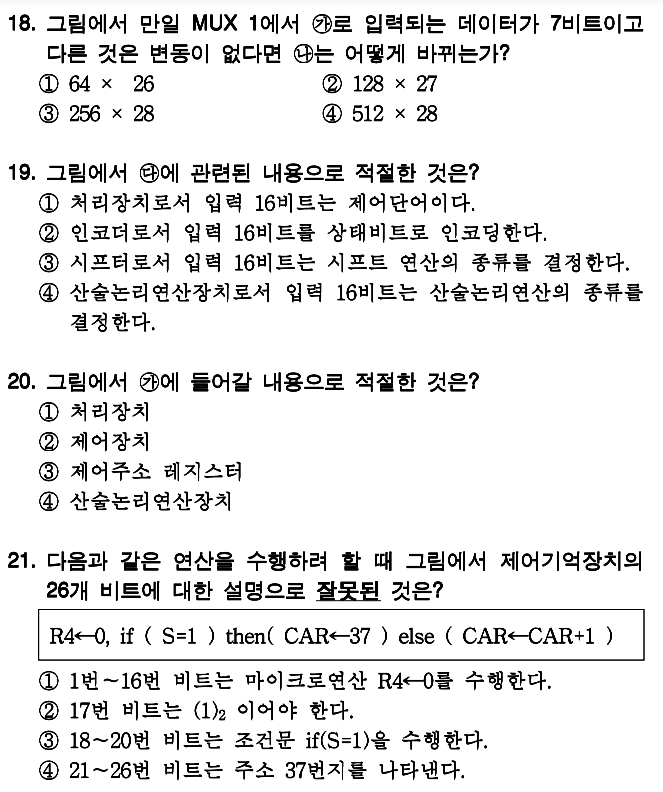 이 문제의 핵심은 제어주소 레지스터, 제어기억장치, 처리장치 등이 어디있는지와 몇비트를 넘겨주는지 입니다.