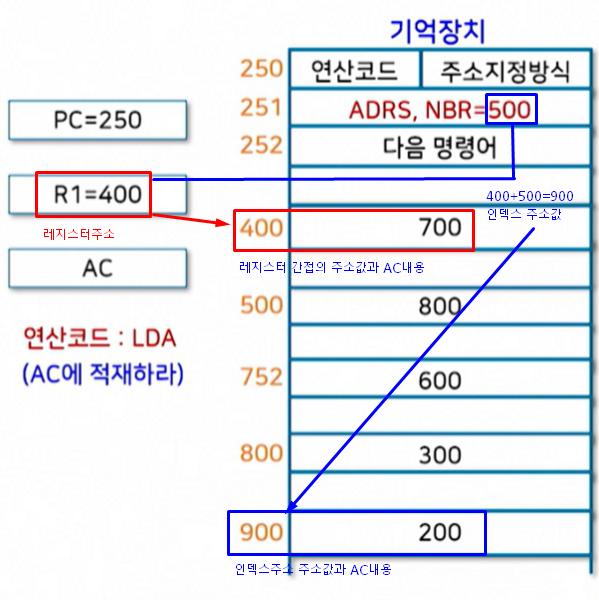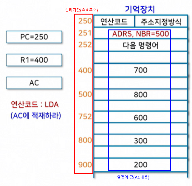 그 값을 주소로 삼아 찾아가면 레지스터간접의 주소값과 AC내용입니다.