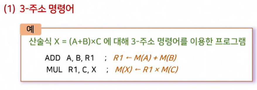 ADD R1, R2, R3 (R1+R2 해서 R3로 전송해라)