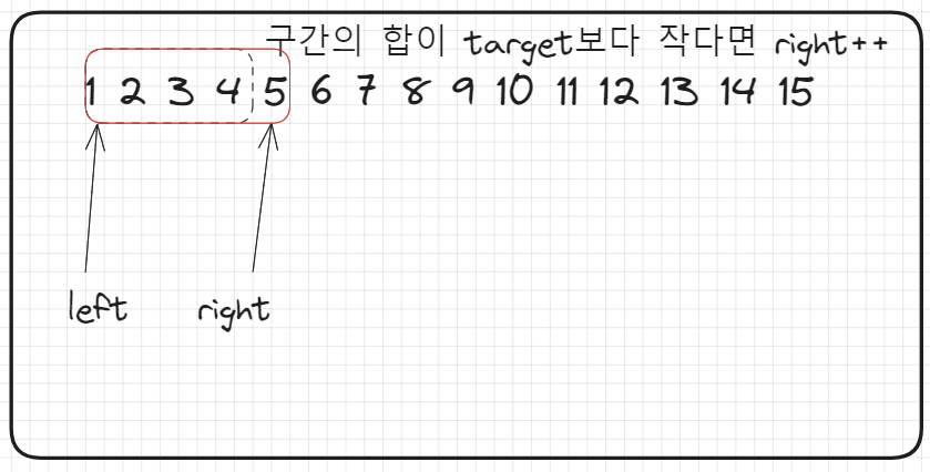 자연수의 "연속된" 숫자의 합이라는 점에서 투포인터를 이용할 수 있다고 생각했습니다.
