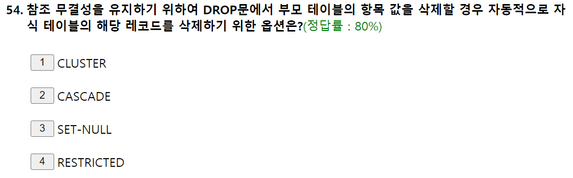 CASCADE - 부모 항목 값 삭제 시 자식들도 같이 삭제