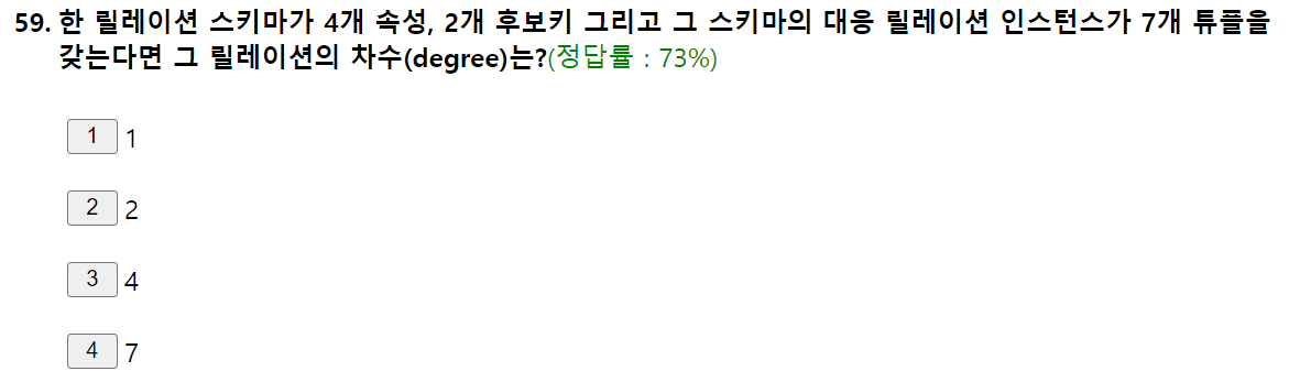 속성이 4개, 튜플이 7개라는 점에서 차수 예측이 가능합니다. 답 3번(해당 문제만 답을 추가했습니다)