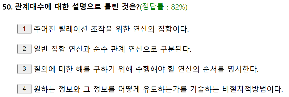 ※ 관계대수 설명이 나올 때 비절차적 언어라 하면 무조건 틀린 지문이다.