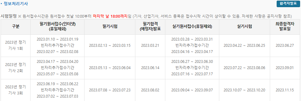 보통 1년에 3회 시험을 치룹니다. 저는 기사를 처음보는거라 몰랐는데 저 시험 일정 안에 원하는 날짜를 선택해서 시험을 보면 되더라구요. 시험 끝자락에 해당하는 날짜일수록 경쟁이 치열하니 접수를 빨리해야합니다 예를들어 제가 본 3회차는 제가 들어간 순간 22, 23일은 거의 마감이었습니다.