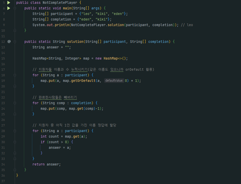 2. 동명이인이 존재하기 때문에 true, false 등으로 단순 구분이 아닌 인원을 판단해야하기에 HashMap<String, Integer>형태로 선언